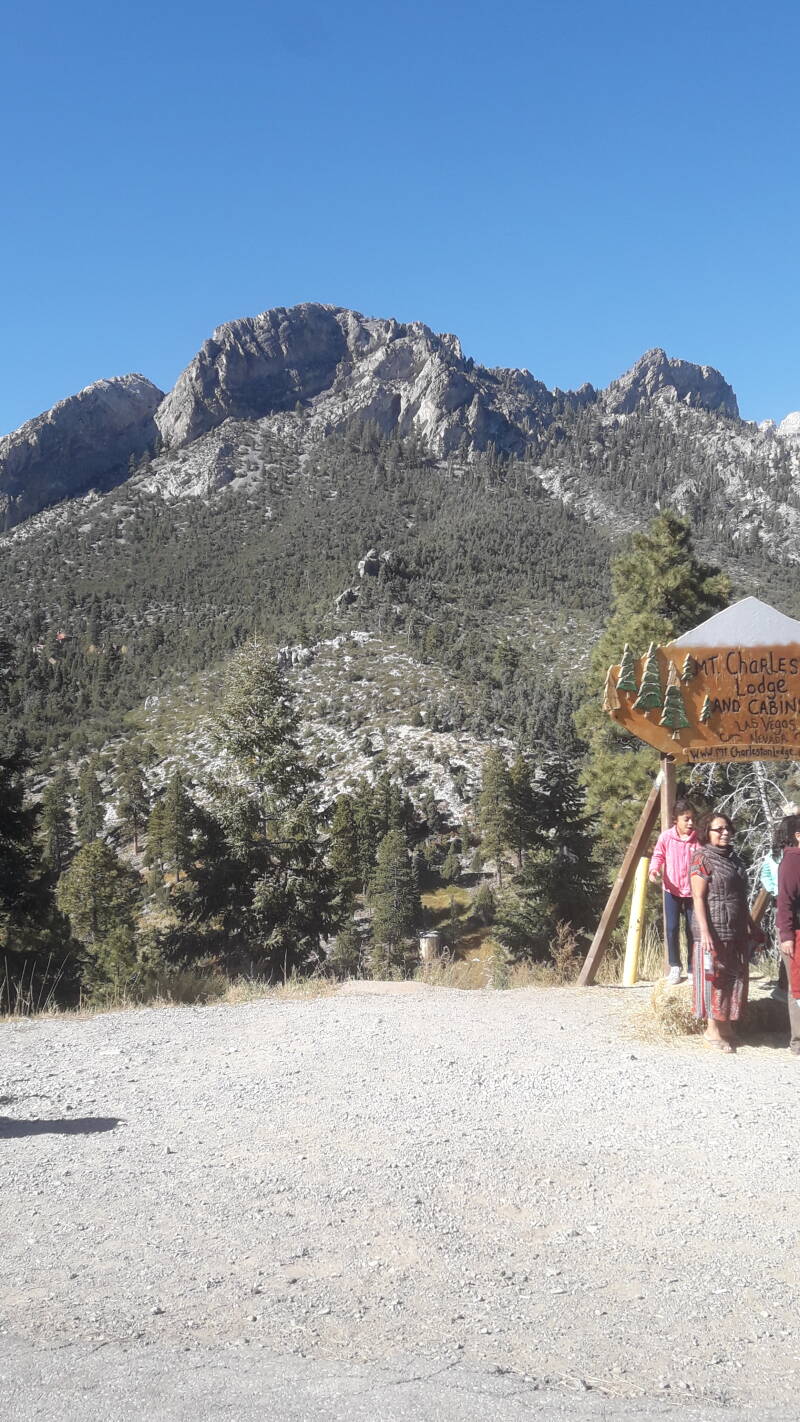 A great start point for a hiking day is the Mount Charleston Lodge. Cute little houses, build out of wood, can be rent to sleep there.